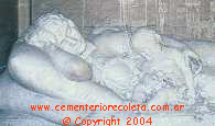 Realizada en mármol de Carrara blanco, conmueve la figura de una madre recostada con su bebé, que parece real. Aquí es destacable la técnica empleada por el escultor, que no omitió un solo detalle. Esto puede observarse en el trabajo del cotín del colchón sobre el cual reposan. Texto: Susana Espósito - Foto: Luis Leoz |